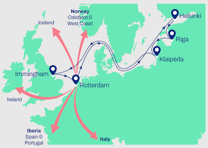 - Short transit times from Baltic States to the UK. 5 days from Riga, 3 days from Klaipeda